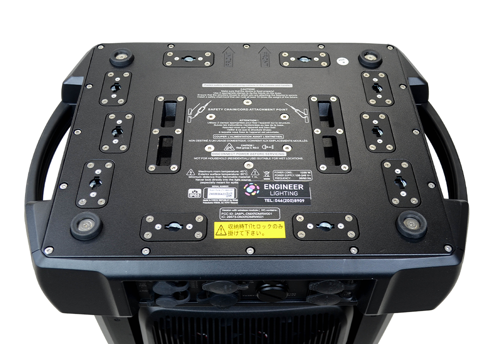 | 基本機能 | ・PAN540° / TILT270°(16bit) ・Dimmer ・Focus ・Zoom(標準光学モード 3.5°~55°) ・Iris ・Strobe ・ColorMixing:CMY+CTO(3000K~6700K) ・ColorWheel1(5色+OPEN) ・ColorWheel2(5色+OPEN) ・Virtual colour wheel:プリセットカラー66色 ・Rot.GoboWheel:5種+OPEN ・EffectWheel1 ・EffectWheel2 ・Frost:2種(ライト1°/ミディアム5°) ・Prism1(6面リニアプリズム) ・Prism2(6面ラディアルプリズム) ・Framing Shutter (ブレード×4 / ローテート角度±60°) |